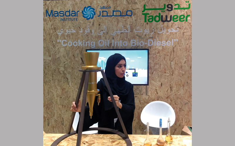 نجح مركز إدارة النفايات في أبوظبي (تدوير)، بالتعاون مع معهد مصدر للعلوم والتكنولوجيا، في إعادة تدوير زيوت الطهي المستخدمة، وتحويلها إلى وقود أحفوري، حيث أنهى المركز المرحلة التجريبية من المشروع، وحول 1000 لتر من زيت الطعام المستخدم إلى 800 لتر ديزل حيوي، من خلال استخدام مفاعل جديد حاصل على براءة اختراع عالمية، تم تصميمه وإنتاجه بمعهد مصدر.