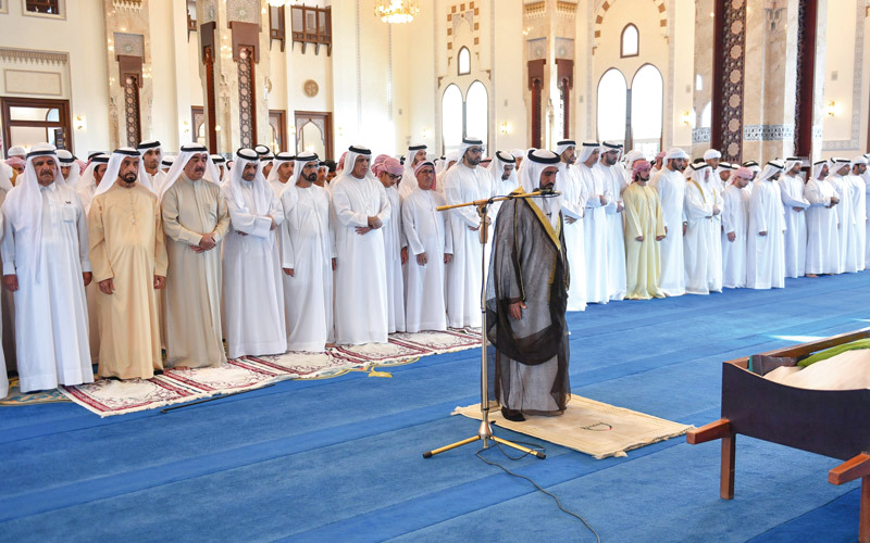 وأدّى الصلاة إلى جانب سموّه في مسجد زعبيل بدبي، عصر أمس، صاحب السموّ الشيخ حمد بن محمد الشرقي، عضو المجلس الأعلى حاكم الفجيرة، وصاحب السموّ الشيخ سعود بن راشد المعلا، عضو المجلس الأعلى حاكم أم القيوين، وصاحب السموّ الشيخ سعود بن صقر القاسمي، عضو المجلس الأعلى حاكم رأس الخيمة، وسموّ الشيخ حمدان بن محمد بن راشد آل مكتوم، ولي عهد دبي، وسموّ الشيخ حمدان بن راشد آل مكتوم، نائب حاكم دبي وزير المالية، وسموّ الشيخ مكتوم بن محمد بن راشد آل مكتوم، نائب حاكم دبي، وسموّ الشيخ محمد بن حمد بن محمد الشرقي، ولي عهد الفجيرة، وسموّ الشيخ راشد بن سعود بن راشد المعلا، ولي عهد أم القيوين، وسموّ الشيخ محمد بن سعود بن صقر القاسمي، ولي عهد رأس الخيمة.