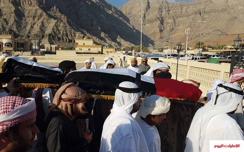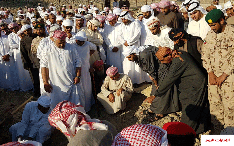 وشيع المصلون جثمان الشهيد إلى مثواه الأخير في مقبرة الظهوريين بوادي شعم برأس الخيمة.
