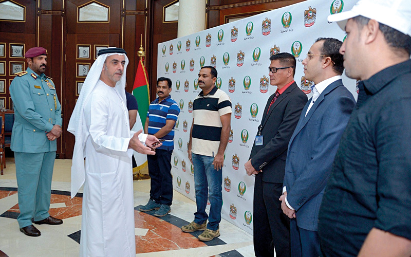 كرّم الفريق سمو الشيخ سيف بن زايد آل نهيان، نائب رئيس مجلس الوزراء وزير الداخلية، في مبنى الوزارة أمس، ستة من موظفي المنشآت الخاصة، الذين سبق تدريبهم من قبل الدفاع المدني كمستجيبين للحالات الطارئة، لإسهامهم في اتخاذ إجراءات السلامة الصحيحة في موقع حادث سقوط الرافعة أخيراً إلى حين وصول أجهزة الدفاع المدني.