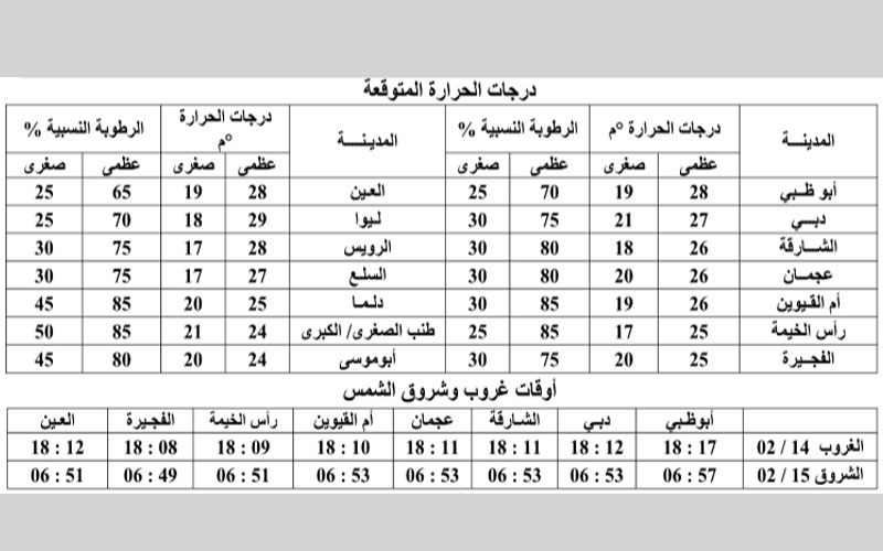 الطقس ودرجات الحرارة المتوقعة في الدولة خلال اليومين القادمين
