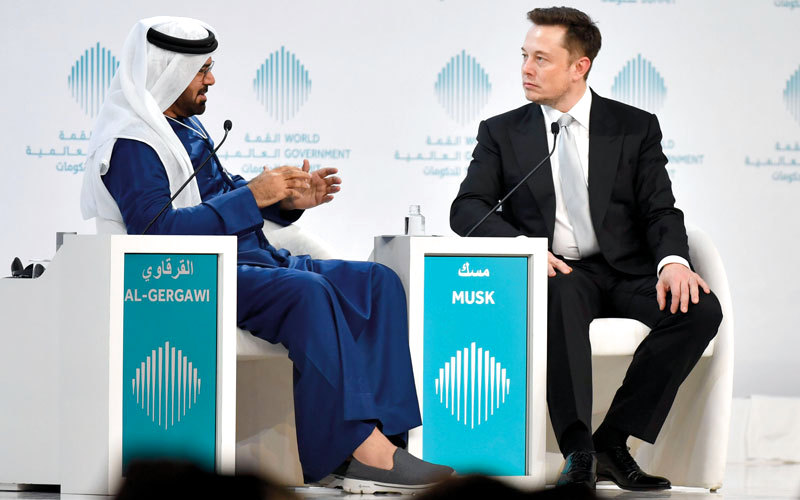 بحضور سمو الشيخ حمدان بن محمد بن راشد آل مكتوم، ولي عهد دبي، وسمو الشيخ مكتوم بن محمد بن راشد آل مكتوم، نائب حاكم دبي، عقدت القمة العالمية للحكومات جلسة حوارية، شارك فيها وزير شؤون مجلس الوزراء والمستقبل رئيس القمة العالمية للحكومات، محمد عبدالله القرقاوي، والرئيس التنفيذي لشركتي «سبيس إكس» و«تيسلا» الشخصية العالمية الرائدة في مجال الابتكار والاختراع، إيلون ماسك، الذي رد على سؤال حول احتمال وجود كائنات فضائية ذكية خارج الكوكب، أو ما يعرف باسم Aliens، قائلاً إن «هذا الاحتمال وارد، وأنه إذا كانت هناك كائنات ذكية جداً خارج الأرض، فلا شك أنها تراقبنا الآن».