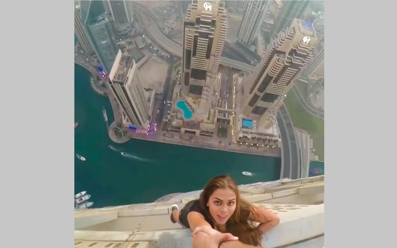 وكانت أودينتكوفا ( 23عاماً)، نشرت مقطع فيديو عبر حسابها بموقع التواصل الإجتماعي "انستغرام"، أثناء قيامها بحركات استعراضية أقرب إلى الانتحار من قمة أحد أكثر الأبراج ارتفاعاً في دبي،