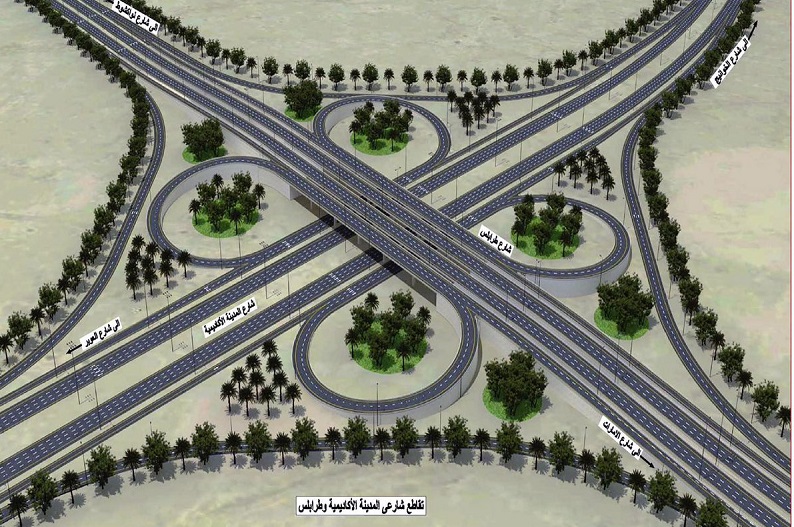 وأوضح المدير العام ورئيس مجلس المديرين للهيئة أن المشروع يشمل كذلك تطوير التقاطعات على طول المحور، حيث سيتم تطوير تقاطع شارع طرابلس مع شارع الجزائر الى نفق بسعة ثلاثة مسارات في كل اتجاه ليخدم الحركة المرورية القادمة من شارع الرباط إلى شارع طرابلس، مع تطوير التقاطع السطحي الحالي المحكوم بإشارة ضوئية، ويتوقع أن يسهم هذا التطوير في خفض زمن الانتظار على التقاطع القائم من ثلاثة دقائق إلى أقل من دقيقة.