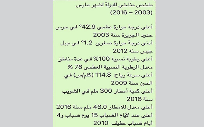 تعرّف إلى أعلى وأدنى درجة حرارة سجلت في الدولة في مارس بين عامي "2003-2016"
