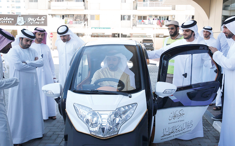 دشن الشيخ راشد بن حميد النعيمي، رئيس دائرة البلدية والتخطيط بعجمان، سيارة كهربائية صديقة للبيئة، لتسهيل عمل مراقبي المواقف بالإمارة، وجعلهم نموذجاً يحتذى به من قبل جميع السكان.