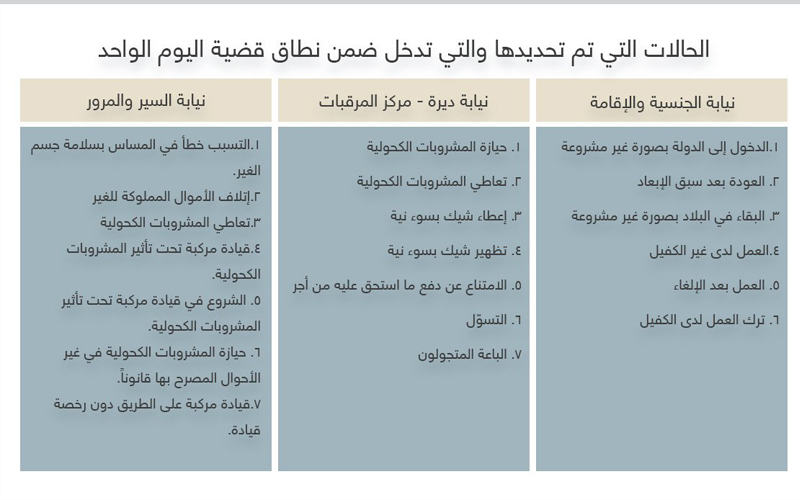 توضح الصورة الحالات التي تم تحديدها ضمن " قضية اليوم الواحد".