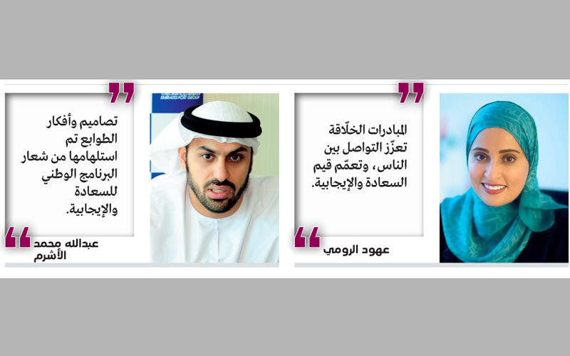 وقال الرئيس التنفيذي لمجموعة بريد الإمارات بالوكالة عبدالله محمد الأشرم، يأتي إصدار مجموعة طوابع «السعادة والإيجابية»، تماشياً مع رؤية صاحب السمو الشيخ محمد بن راشد آل مكتوم، نائب رئيس الدولة رئيس مجلس الوزراء حاكم دبي، عن «السعادة والإيجابية»، واستجابة للمبادرات الحكومية الخاصة بإطلاق وتبني المبادرات والمشروعات، لتحقيق السعادة والإيجابية في المجتمع، ضمن عدد من المبادرات التي تقدمها المجموعة، واستمد فكرة التصميم من شعار البرنامج الوطني للسعادة والإيجابية.