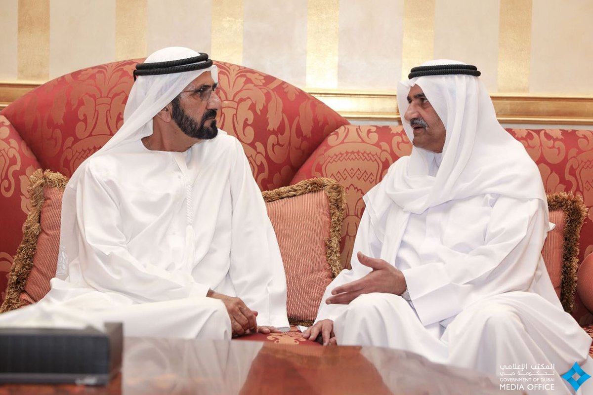 قدم صاحب السمو الشيخ محمد بن راشد آل مكتوم نائب رئيس الدولة رئيس مجلس الوزراء حاكم دبي واجب العزاء في وفاة المغفور له الشيخ حمد بن سيف الشرقي.