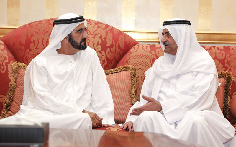 محمد بن راشد يعزّي حاكم الفجيرة في وفاة حمد بن سيف الشرقي