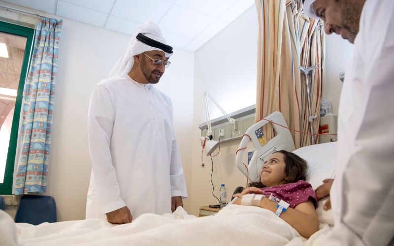 محمد بن زايد يزور مصابي حادث اعتداء الطعن في الفجيرة بمستشفى خليفة