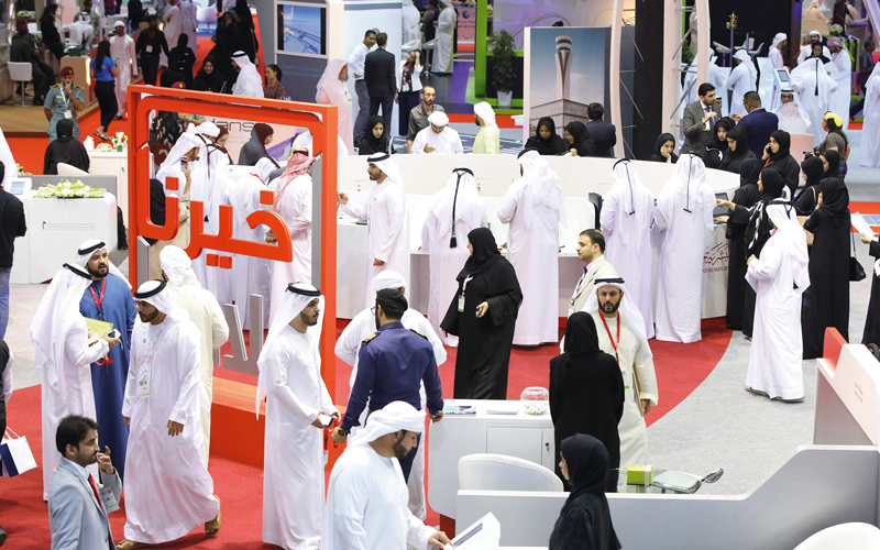شهدت منصة حكومة دبي بمعرض الإمارات للوظائف، التي تشرف عليها دائرة الموارد البشرية لحكومة دبي، إقبالاً كبيراً منذ الساعات الأولى لافتتاح المعرض.