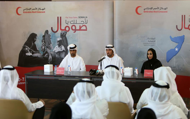 وقال إن "تداعيات الأزمة و المجاعة في الصومال خلفت واقعا إنسانيا صعبا في جميع مجالات الحياة الضرورية ، وفاقمت من حجم المعاناة التي تجسدت صورها في الأمراض و سوء التغذية بسبب شح الغذاء و نقص مقومات الحياة "، مشددا على أن "دولة الإمارات كانت كدأبها دائما سباقة في التجاوب مع المتأثرين ، وبتوجيهات كريمة من قيادتها الرشيدة ومتابعة سمو الشيخ حمدان بن زايد آل نهيان تتحرك هيئتنا الوطنية تجاه الساحة الصومالية وتعزز استجابتها لدعم الأوضاع الإنسانية و المساهمة في توفير الاحتياجات الإنسانية الضرورية للأشقاء في الصومال".