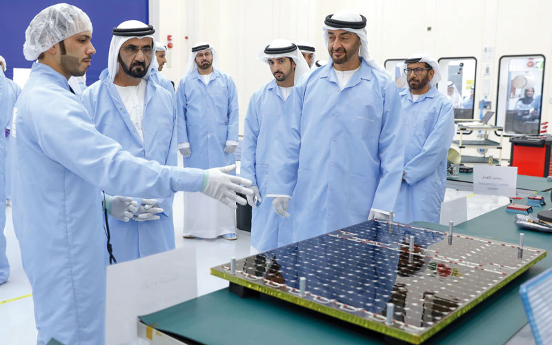كما أطلق سموهما، بحضور سمو الشيخ حمدان بن محمد بن راشد آل مكتوم، ولي عهد دبي، وسمو الشيخ منصور بن زايد آل نهيان، نائب رئيس مجلس الوزراء وزير شؤون الرئاسة، مجمع تصنيع الأقمار الاصطناعية ضمن مركز محمد بن راشد للفضاء، لتكون الإمارات أول دولة عربية تصنع الأقمار الاصطناعية بشكل كامل، وتصل إلى كوكب المريخ في عام 2021، وتنشئ مستوطنة دائمة على الكوكب الأحمر بحلول عام 2117.