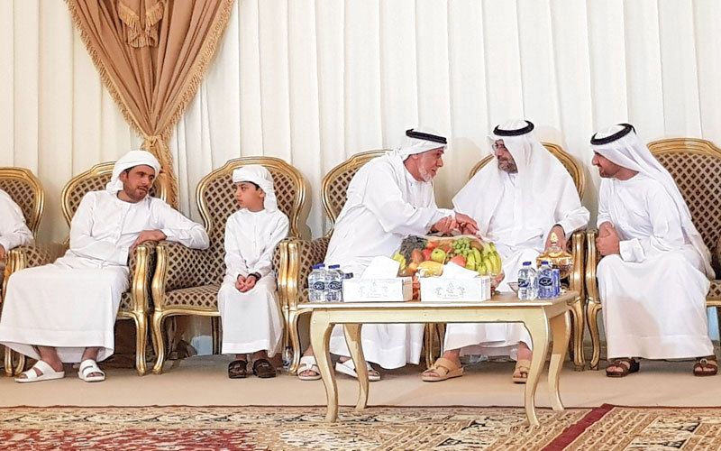 ولي عهد الشارقة ونائب الحاكم يقدمان العزاء لأسرة الشهيد الحمادي