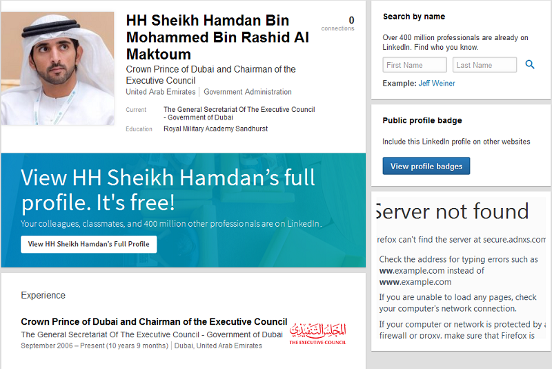 حمدان بن محمد يطلق صفحته على موقع " لينكد إن "