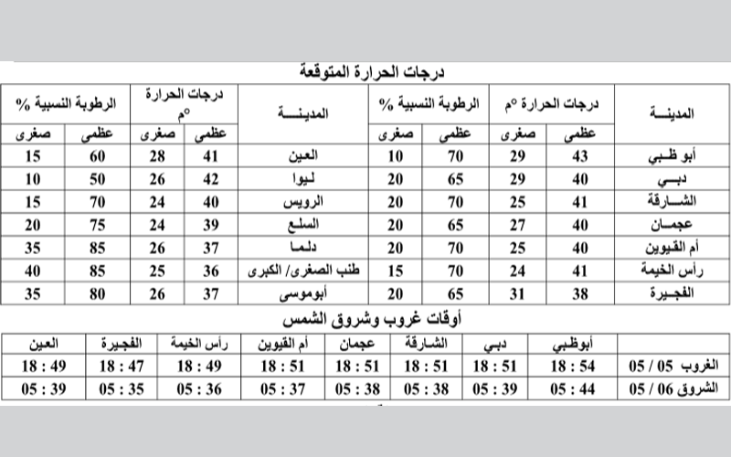 الطقس المتوقع في الدولة خلال عطلة نهاية الأسبوع