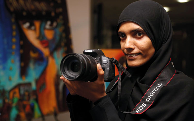 «مهام التصوير التطوعية» هو المجال الذي اختارته المواطنة، فاطمة سبيل، وسيلةً لتوظيف طاقتها في خدمة المجتمع، وتحدي ما لحق بها في سن مبكرة من إعاقة سمعية وفقد النطق، إثر إصابتها بمرض أدى إلى ارتفاع درجة حرارتها.