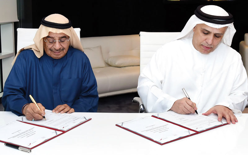 الطاير والصايغ خلال توقيع مذكرة التفاهم. من المصدر