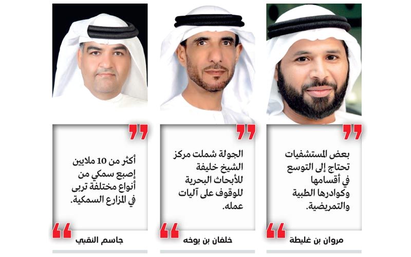 وأفاد عضو المجلس جاسم النقبي بأن «الجولات الميدانية شملت مزارع الأسماك في إمارة أم القيوين، ومصنع الطحالب وأغذية الأسماك، المرافق لها، الذي تم إنجاز عدد من أقسامه، فيما بلغت نسبة الإنجاز في أقسام أخرى 40%»، متوقعاً الانتهاء منها خلال العام المقبل.