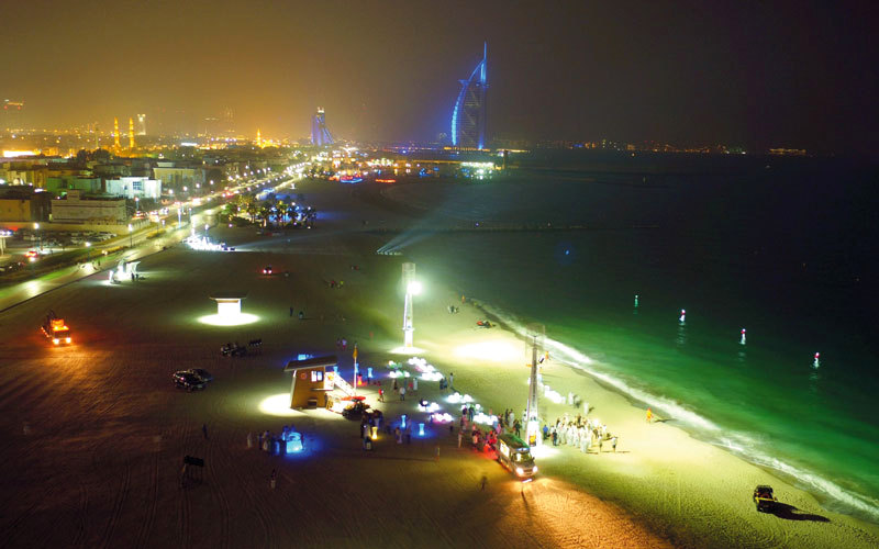 بلدية دبي تطلق أول شاطئ عام للسباحة الليلية