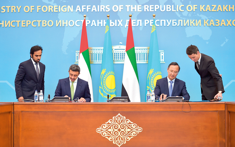 عبدالله بن زايد وقع البروتوكول مع نظيره الكازاخستاني