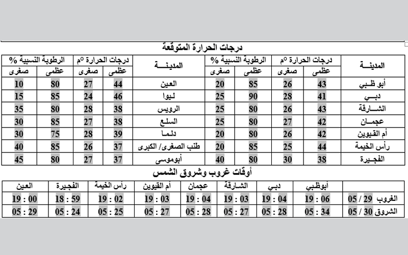 الطقس المتوقع في الدولة خلال اليومين القادمين