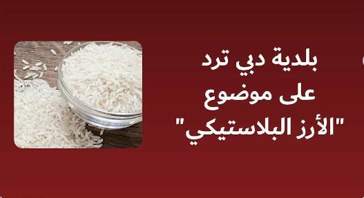 أكدت بلدية دبي عبر حسابها في موقع التواصل الاجتماعي "انستغرام" على عدم مصداقية شائعة الأرز البلاستيكي، ولا يوجد بالأسواق ما يعرف بالأرز البلاستيكي لأنه أشبه بالخيال ومن السهل كشفه من خلال الخواص الحسية وأثناء الطهي أو إضافة أي مواد كالدهن أو الزيت والذي ببساطة سيتحول إلى كتلة بلاستيكية بفعل الحرارة، وعليه تهيب البلدية المستهلكين بعدم نقل تلك الشائعات المضللة وغير واقعية.