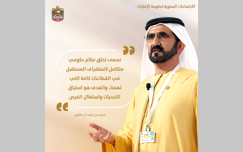 وستُشكل الاجتماعات السنوية لحكومة الإمارات الحدث الوطني الأهم للتأكد من سير الخطط التنموية بشكل صحي، ومعالجة أي تحديات تنفيذية على المستويات كافة، وستمتد الاجتماعات السنوية على مدار يومين في شهر سبتمبر المقبل، حيث تناقش في يومها الأول مجموعة من الموضوعات التنموية الوطنية تشمل الشباب والإسكان والتوطين والإعلام والتكنولوجيا والهوية والنظام التعليمي والصحي والقضائي والبيئي بالدولة، بالإضافة إلى تنسيق العمل الحكومي الاتحادي والمحلي لبناء خدمات المستقبل في الدولة.