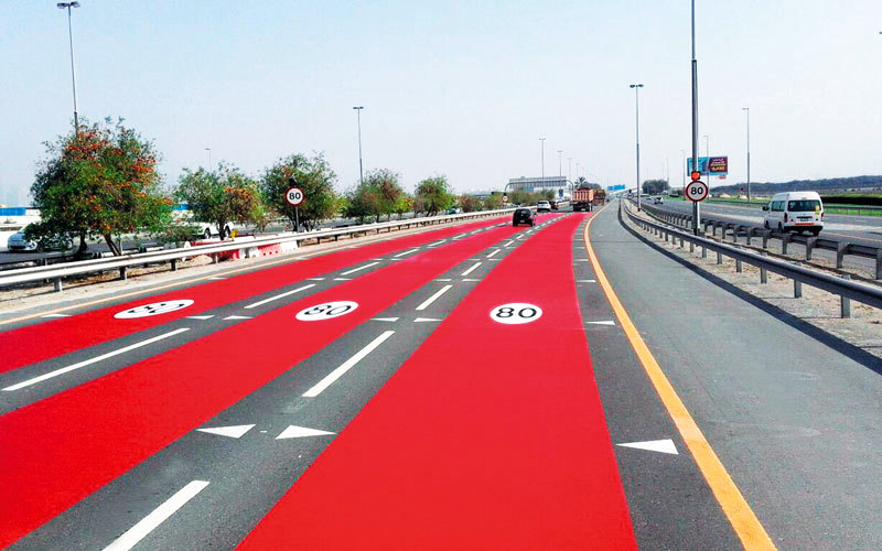 «طرق دبي» تهدف من صبغ الشوارع إلى الوصول لصفر وفاة. من المصدر