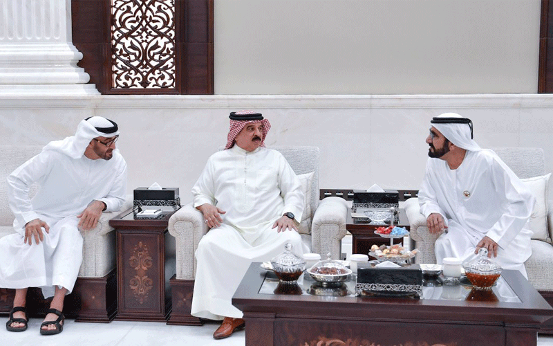 محمد بن راشد ومحمد بن زايد يستقبلان ملك البحرين