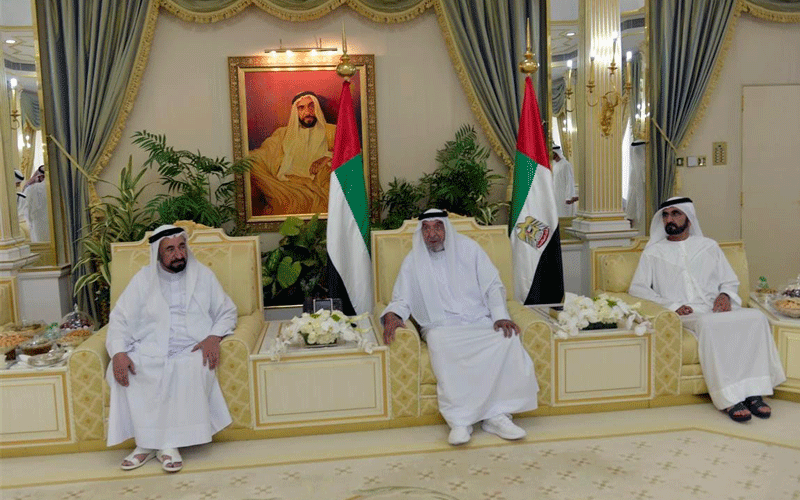 فقد استقبل صاحب السمو رئيس الدولة .. صاحب السمو الشيخ الدكتور سلطان بن محمد القاسمي عضو المجلس الأعلى حاكم الشارقة وصاحب السمو الشيخ حميد بن راشد النعيمي عضو المجلس الأعلى حاكم عجمان وصاحب السمو الشيخ حمد بن محمد الشرقي عضو المجلس الأعلى حاكم الفجيرة وصاحب السمو الشيخ سعود بن راشد المعلا عضو المجلس الأعلى حاكم أم القيوين وصاحب السمو الشيخ سعود بن صقر القاسمي عضو المجلس الأعلى حاكم رأس الخيمة.
