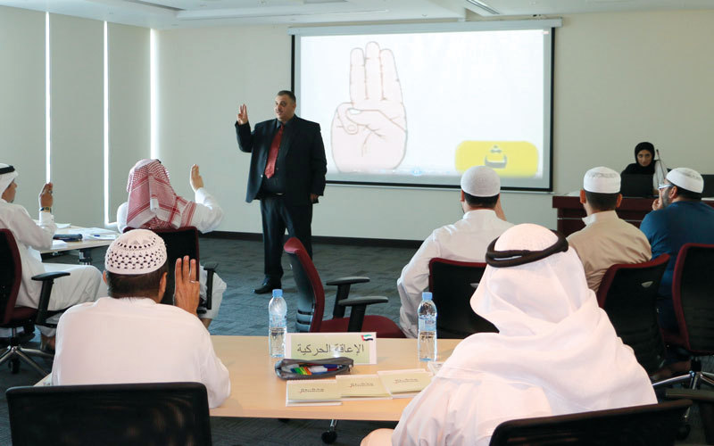 كشفت مديرة إدارة أصحاب الهمم في وزارة تنمية المجتمع، وفاء حمد بن سليمان، عن تعاون الوزارة مع وزارة العدل، في الانتهاء من وضع لائحة معايير لضبط أداء مترجمي لغة الإشارة، ليتم من خلالها تقييم أدائهم، عبر اختبارات يمنحون على ضوء نتائجها تراخيص مزاولة المهنة، مشيرة إلى تمكن وزارة تنمية المجتمع، خلال العام الجاري، من تدريب 248 موظفاً حكومياً على التعامل بلغة الإشارة، بهدف تمكينهم من تقديم العون لأصحاب الهمم.