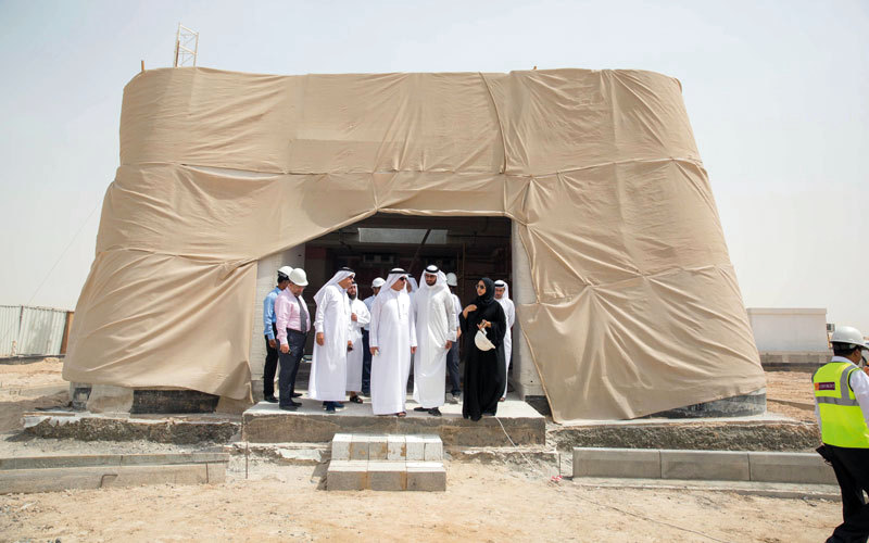 اطلع العضو المنتدب، الرئيس التنفيذي لهيئة كهرباء ومياه دبي، سعيد محمد الطاير، خلال زيارته مجمع محمد بن راشد آل مكتوم للطاقة الشمسية، على الأعمال الإنشائية في مختبر الطائرات بدون طيار في المجمع، الذي يعدّ أول مبنى بتقنية الطباعة ثلاثية الأبعاد في الإمارات، تتم طباعته في موقع المشروع بالكامل، وأول مختبر في العالم يتم إنشاؤه باستخدام هذه التقنية. ويهدف المختبر إلى دراسة علوم وتقنيات الطائرات بدون طيار والطباعة ثلاثية الأبعاد، وقد بلغت نسبة الإنجاز في الأعمال الإنشائية للمبنى نحو 87%.