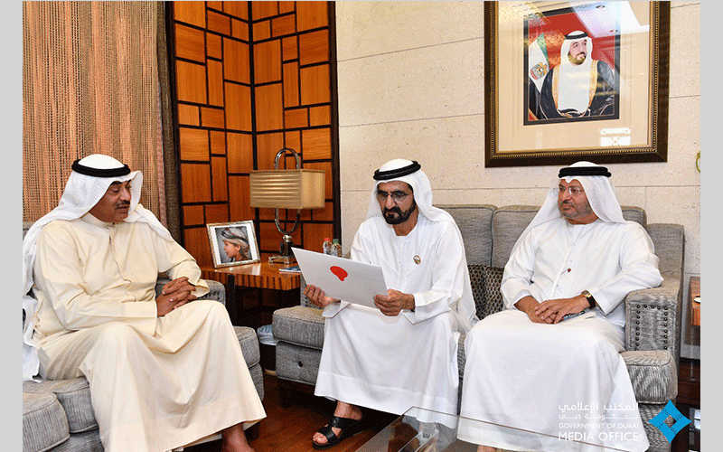 وقد تسلم صاحب السمو نائب رئيس الدولة رئيس مجلس الوزراء حاكم دبي رسالة خطية موجهة إلى صاحب السمو الشيخ خليفة بن زايد آل نهيان رئيس الدولة "حفظه الله" من أخيه صاحب السمو الشيخ صباح الأحمد الجابر الصباح.