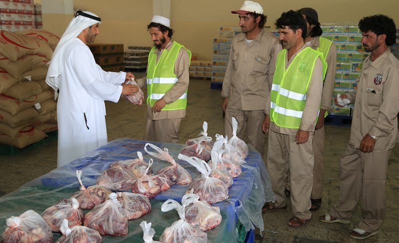 بلدية العين توزع حصص لحوم مجانية على العمال