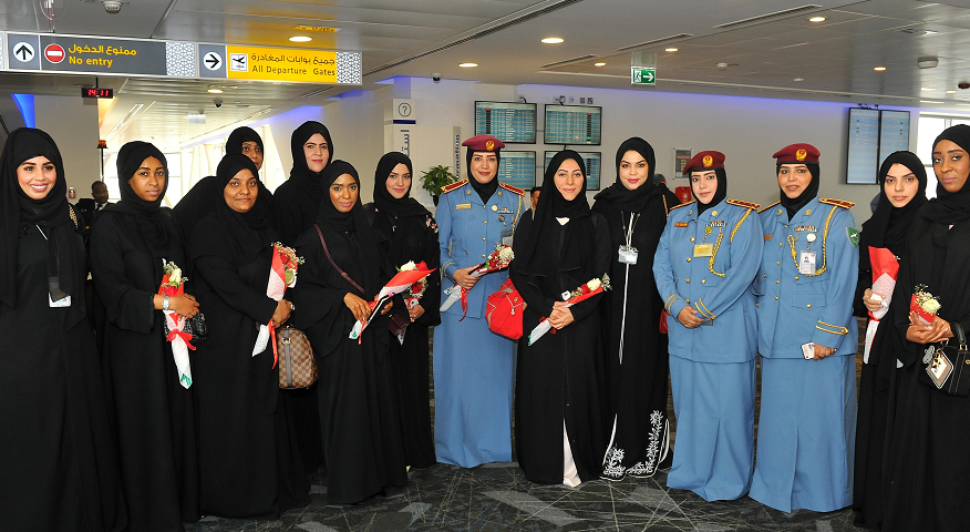 شرطة أبوظبي تستقبل البعثة الرسمية وحجاج الإمارات بالورود