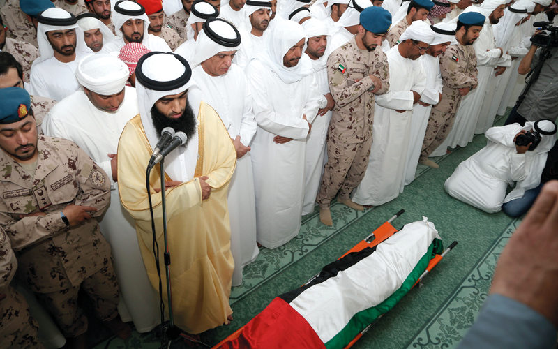 حاكم رأس الخيمة يؤدي صلاة الجنازة على جثمان شهيد الوطن النقبي