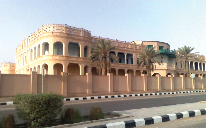 في حين ظل قصر المؤسس، الواقع في حي العزيزية لمحافظة الخرج، شاهد عيان على منجزاته داخل أسوارها، إذ دفعته فطنته ونباهته وحرصه على حماية العاصمة الرياض، من خلال تأمين حدودها الجنوبية من المتمردين من جهة، وميله إلى الاستفادة من موارد الخرج الطبيعية المتمثلة في خصوبة أراضيها، ووفرة عيونها المائية من جهة أخرى، إلى تشييد قصر سمي بـ«مشرف»، لأنه يشرف ويطل على بعض بلدات الخرج التي تميزت بطرازها الإسلامي، وخصص الدور الأول في الجهة الشرقية منه لإقامته مع أسرته، أما الدور الأرضي فجعله مأوى لحاشيته، وعلى الرغم من أن قصر الملك عبدالعزيز، الذي أنشئ خلال عامي 1359 و1360هـ على مرحلتين، ومساحة لا تقل عن 1725 متراً مربعاً، يبدو للزائر قصراً واحداً، إلا أنه في حقيقة الأمر يتكون من قصرين، أحدهما شرقي والآخر غربي، يربط بينهما مطلع السيارة (الدرجة)، في الوقت الذي خصص فيه القصر الغربي لاستقبال زواره، كما يشمل القصر جسراً يؤدي إلى ردهات متباينة داخله، وشرفة علوية، اعتاد الملك عبدالعزيز أن يطل على خيوله من خلالها.