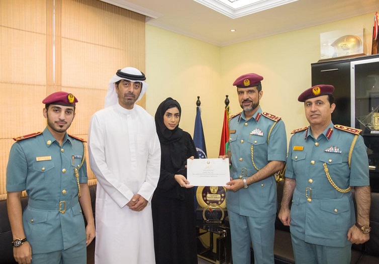 وأشاد العميد الزعابي خلال التكريم في مقر الادارة بالدور البطولي الذي قامت به المواطنة في مد يد العون والمساعدة للشاب الآسيوي والمخاطرة بنفسها وسلامتها في صورة تجسد أسمى معاني التضحية والإباء.