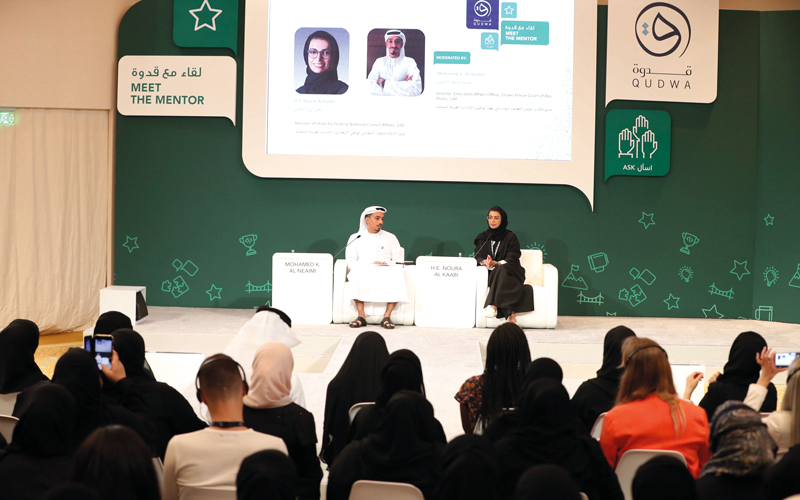 خلال مشاركة الكعبي في جلسة بعنوان «لقاء مع قدوة».