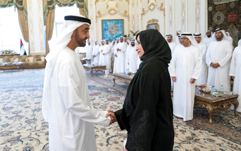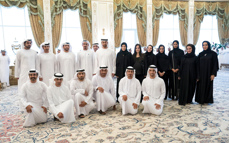 من ناحية أخرى، استقبل صاحب السمو الشيخ محمد بن زايد آل نهيان، المهندسين العاملين على مشروع تطوير المنشآت التعليمية في الدولة، يرافقهم سمو الشيخ عبدالله بن زايد آل نهيان، وزير الخارجية والتعاون الدولي رئيس مجلس التعليم والموارد البشرية.