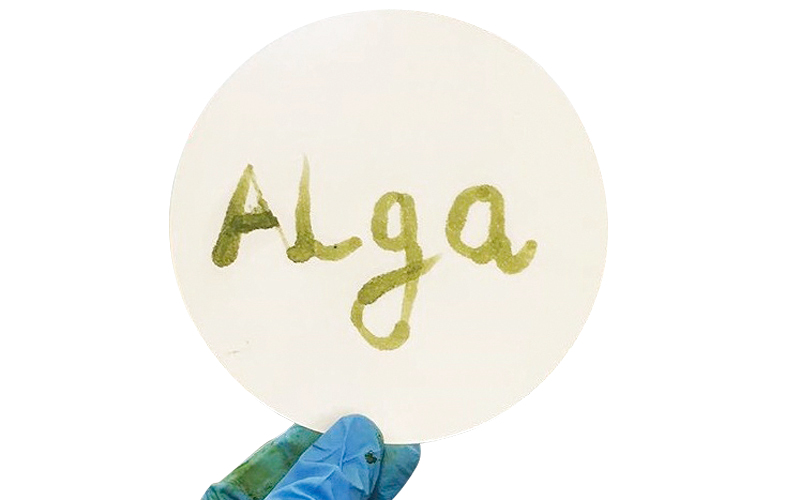 وأضافت أن الدكتور أكد لهن إمكان الاستفادة من الحبر الذي يستخرج من الطحالب، التي تدخل أيضاً في صناعة الإسفلت، لذا عملن على هذه النقطة في البدء، وبالفعل تمكنّ من تصنيع حبر خاص باستخدام الطحالب.