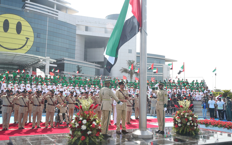 طلاب 110 مدارس يشكلون علم الإمارات في شرطة دبي
