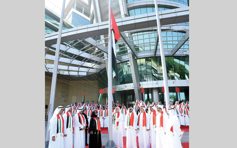 الطاير والمديرون التنفيذيون خلال رفع العلم