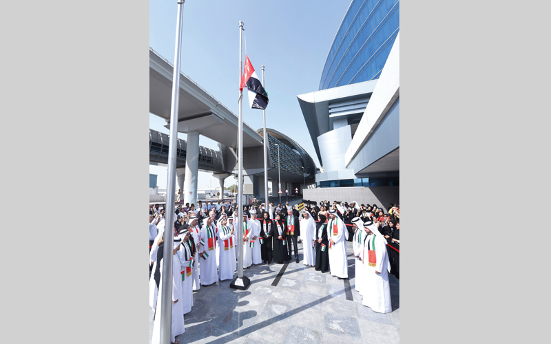 احتفلت مجموعة الإمارات، صباح أمس، بـ«يوم العلم». ورفع علم دولة الإمارات العربية المتحدة أمام المقر الرئيس للمجموعة، الشيخ ماجد المعلا، نائب رئيس أول طيران الإمارات لدائرة العمليات التجارية، بحضور عدد من كبار المسؤولين، وجمع غفير من العاملين في المجموعة، التي تضم «طيران الإمارات» و«دناتا».