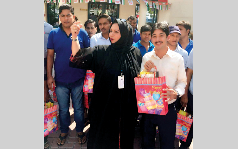 جميلة وفريق التطوّع وزعوا هدايا على عمال البلدية والنظافة ومستخدمي سوق الخضار. الإمارات اليوم