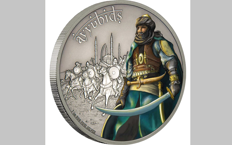 • المسكوكات تحوي نسبة كبيرة من الذهب والفضة لا تقل عن 99.9%. • العملة الأيوبية قال رجل الأعمال المواطن عمران الشرهان، إنه عمل خلال الفترة الماضية على مشروع سك عملة تحمل اسم صلاح الدين الأيوبي، خصوصاً بعد أن تكفّلت شركة نيوزيلندية بإنتاج عملات تكرّم سلسلة من المحاربين القدامى سواء من «سبارتا» اليونان، أو «ساموراي» اليابان، وحتى الـ«فايكنج» من شمال أوروبا، ما دفعه إلى تقديم اقتراح خاص بسك عملة تكريماً وتخليداً لذكرى القائد المسلم الذي حرر القدس، ووافقت الشركة على ذلك، لكن رأوا أن ينتجوا خطاً كاملاً يحمل اسم «الأيوبيين». |