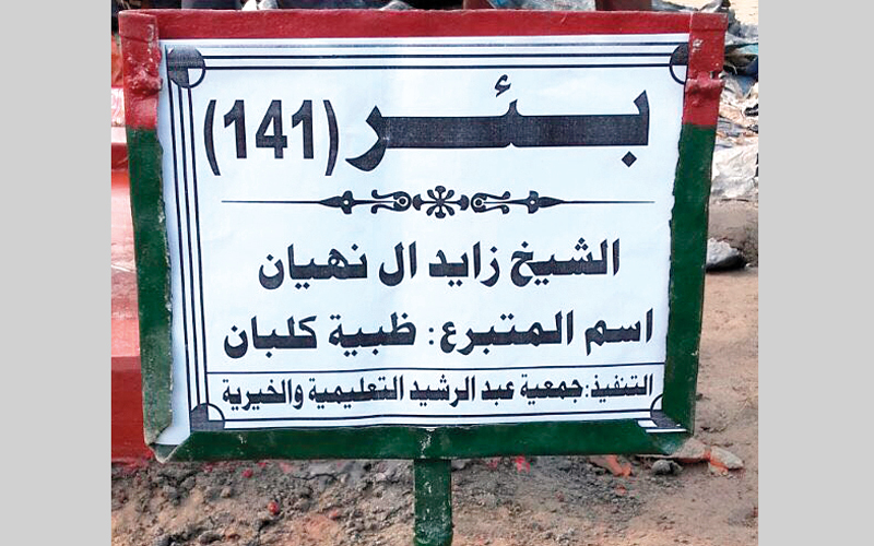 وأضاف: «تواصلت مع جمعية منار الإيمان الخيرية في إمارة عجمان، وطلبت منها أن تحدّد لنا مشروعاً يمكن الإسهام فيه بما تم جمعه من ظبية ومحمد من مصروفهما اليومي، بشرط أن يحمل المشروع اسمَي المغفور لهما الشيخ زايد والشيخ راشد، فحدّدت لنا الجمعية حفر بئرين لسقي الماء في دولة الهند»، موضحاً أن «كلفة كل بئر تبلغ 600 درهم، فأرسلت إلى الجمعية المبلغ عن طريق حسابها البنكي».
