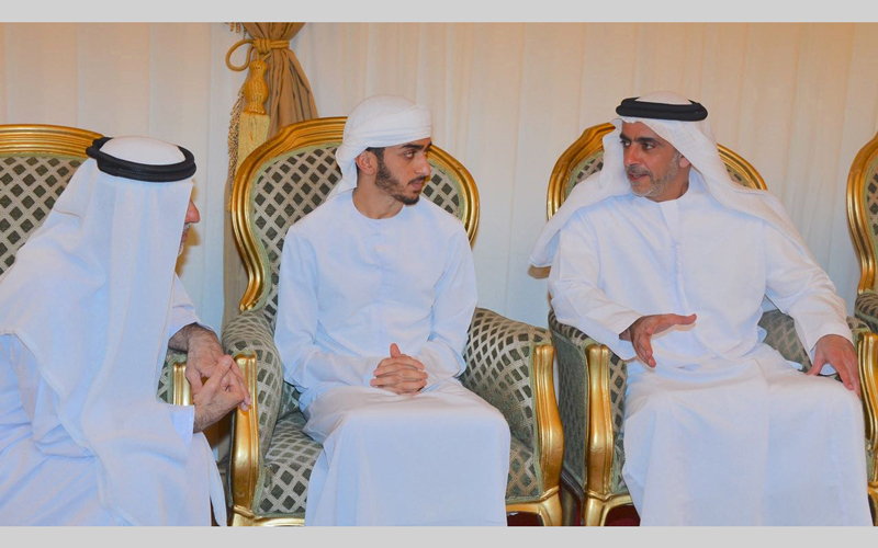 وأعرب سمو نائب رئيس مجلس الوزراء وزير الداخلية، والشيخ راشد آل خليفة، خلال زيارتهما مجلس العزاء أمس، في منطقة الظيت في رأس الخيمة عن خالص تعازيهما وصادق مواساتهما لذوي الشهيد، داعيين الله العلي القدير أن يتغمده بواسع رحمته، وأن ينزله منازل الصديقين والشهداء والأبرار، وأن يسكنه فسيح جناته ويلهم ذويه الصبر والسلوان.